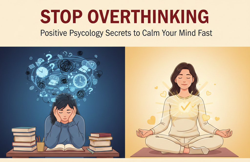 Start by explaining that overthinking is a common habit where the mind repeats the same worries, regrets, or negative thoughts. It drains energy, affects sleep, and increases stress. Positive psychology helps by focusing on well-being, strengths, and scientifically proven methods to calm the mind. This blog will share fast and practical positive psychology techniques anyone can use to stop overthinking.