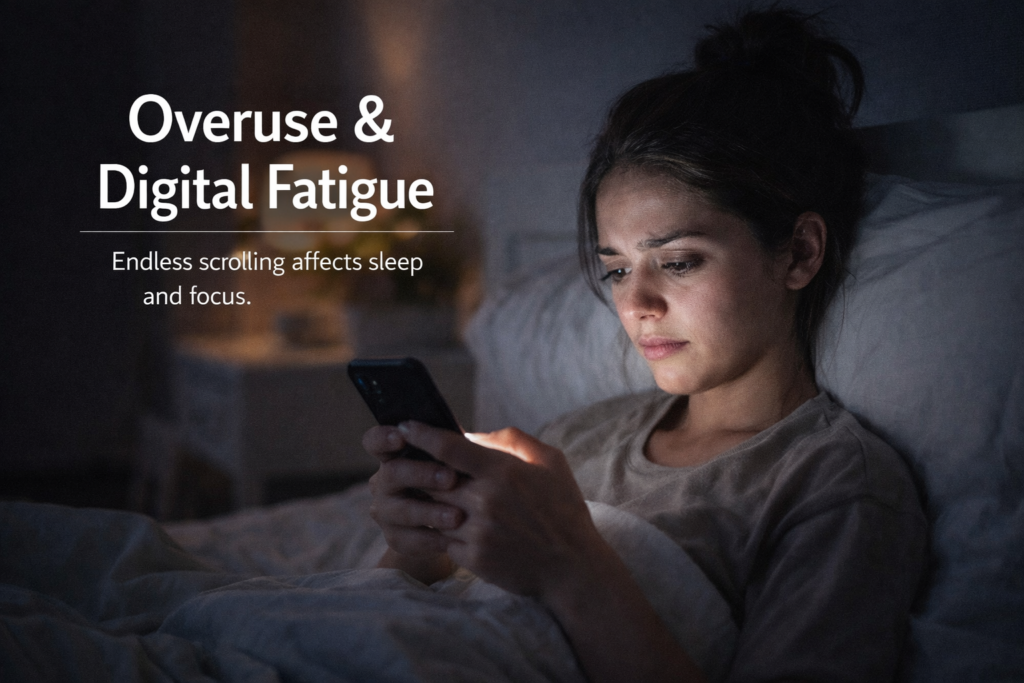 The design of social media encourages frequent engagement through likes, notifications, and endless scrolling. Excessive use can disrupt sleep, concentration, and real-world relationships.